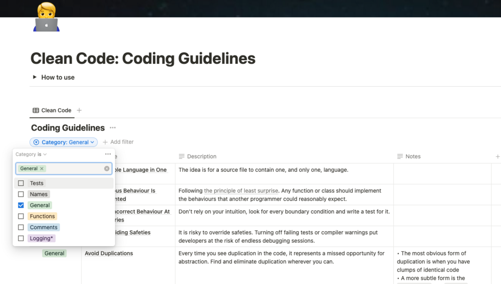 Notion Template: Clean Code Guidelines All in One